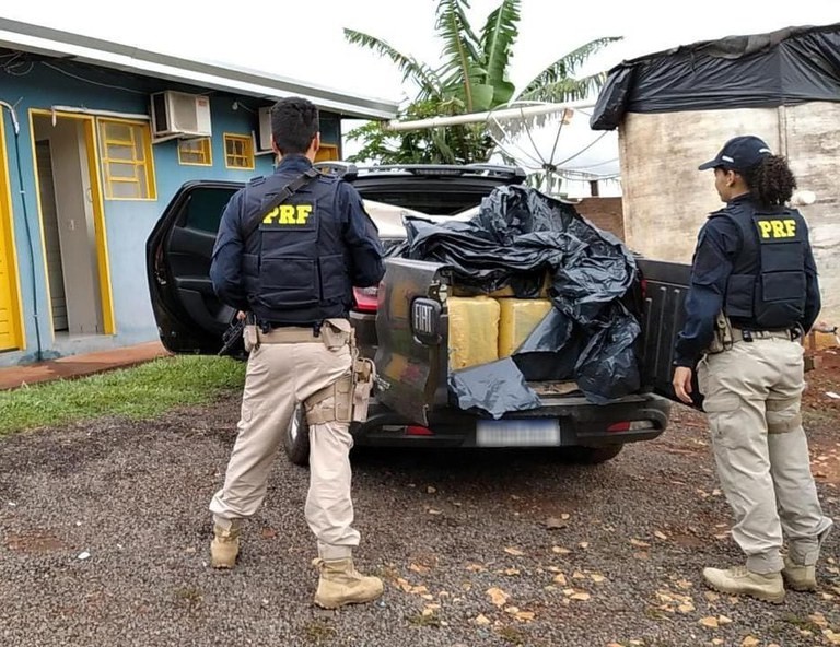 Os policiais rodoviários federais fiscalizavam na BR-163, quando avistaram uma picape Fiat/Toro, placas de Votorantim (SP), estacionada em um estabelecimento às margens da rodovia. Ao ser encontrado, o condutor do veículo, que tomava café da manhã, confessou que transportava droga.