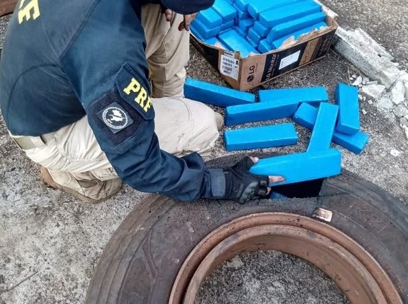 No domingo (24), caminhoneiro de 55 anos foi preso na região de Betim (MG), na BR-262 após sair de Mato Grosso do Sul com carregamento de drogas. Ele levava o entorpecente em alguns pneus das carretas do bitrem e ganharia R$ 20 mil pelo tráfico.