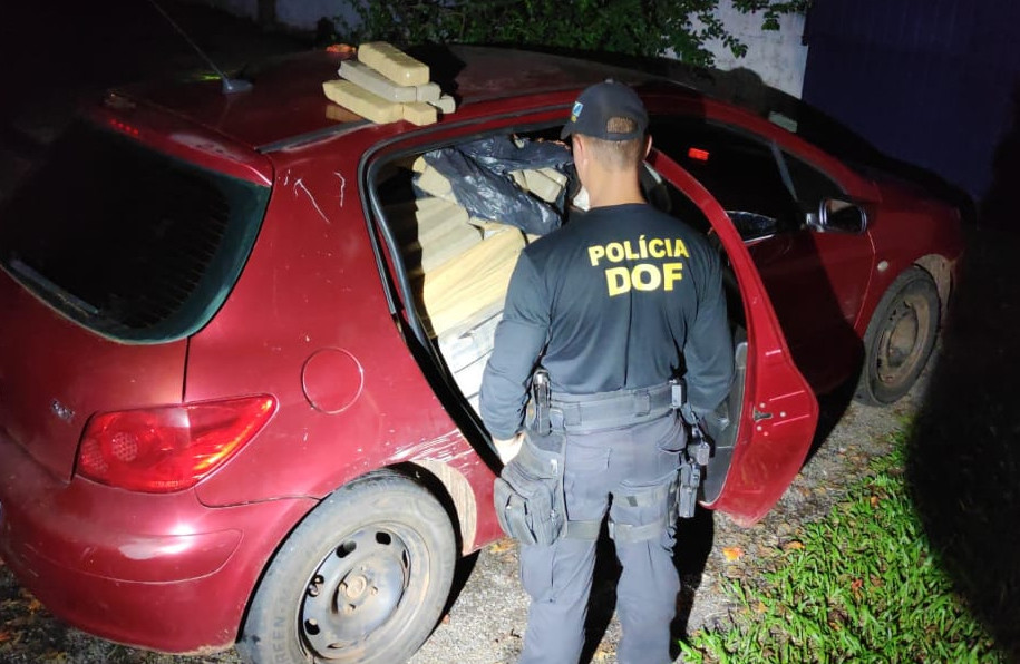 Policiais do Departamento de Operações de Fronteira (DOF) apreenderam, na noite de ontem, um veículo Peugeot 307 de cor vermelha carregado com 351 quilos de maconha.