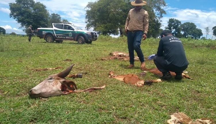 Ladrões de gado mataram duas vacas e deixaram para trás apenas a cabeça e vísceras em Terenos, a 28 quilômetros de Campo Grande. Neste sábado (30), equipes da Polícia Civil e da Polícia Militar Ambiental estiveram na propriedade invadida, localizada nas proximidades da ponte do grego.