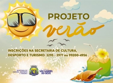 A Prefeitura de São Gabriel do Oeste abriu inscrições para o “Projeto Verão 2021”, um evento criado e promovido pela Secretaria de Cultura, Desporto e Turismo (SECDET). O Projeto Verão é uma série de atividades esportivas com inscrições gratuitas e aberta aos munícipes.