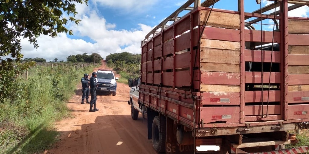 A Guarnição de Serviço foi acionada via 190 informando de um possível furto de gado de uma fazenda próximo ao município e eles estariam transportando em uma camionete F4000 branca com gaiola vermelha.