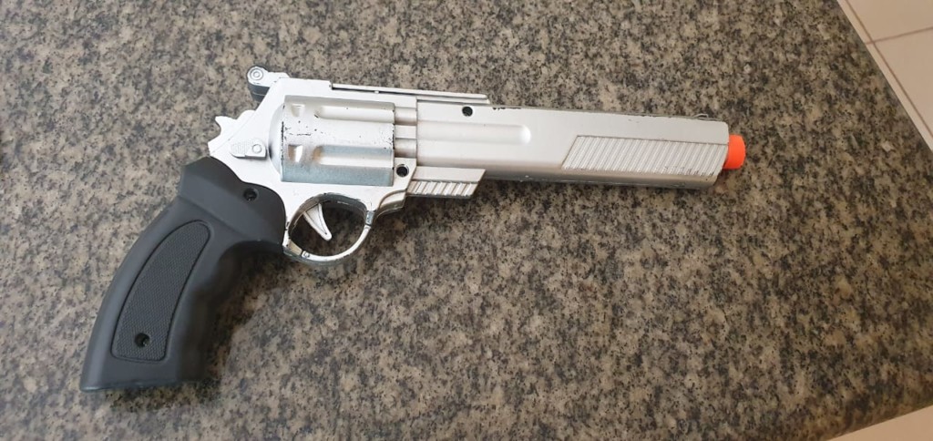 Um policial militar que trabalha no local, avistou a atitude suspeita do homem que aparentava estar armado e o imobilizou até a chegada da viatura. Com a chegada da guarnição, os PMs deram voz de prisão ao autor que estava de posse de um simulacro (arma de brinquedo) em sua cintura.