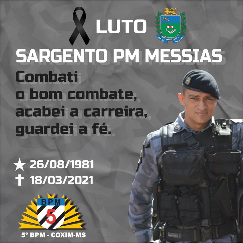 O sargento da Polícia Militar, Messias Alves de Oliveira, de 40 anos, é a 40ª vítima do Coronavírus (Covid-19) em Coxim.