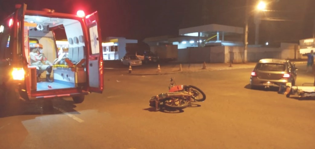 A falta de atenção de um motorista causou um acidente que deixou um entregador ferido na noite deste sábado (20) no centro de São Gabriel do Oeste.