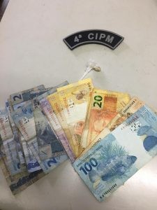 Ao notar a presença da polícia, o jovem demonstrou muito nervosismo e jogou ao solo, uma porção de substância análoga a crack. Questionado sobre o entorpecente, disse que é usuário de drogas e conseguiu arrecadar a quantia de R$20 pedindo às pessoas. Afirmou ainda que comprou a droga em uma “boca de fumo” localizada na rua M.