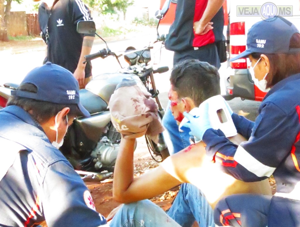 Um jovem de 22 anos, ficou ferido na manhã deste sábado (10), após um acidente ocorrido em um cruzamento, no bairro Jardim Gramado, em São Gabriel do Oeste.