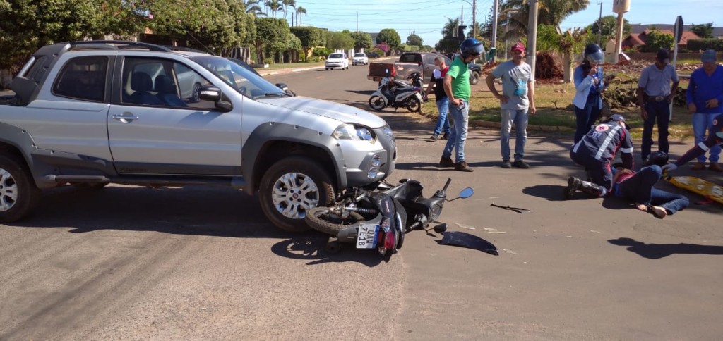 Um acidente registrado no início da tarde desta terça-feira (11) envolvendo uma motocicleta Honda Biz e um veículo Fiat Strada, deixou uma mulher ferida em São Gabriel do Oeste.