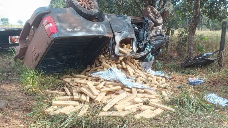 O traficante estava fugindo por uma estrada vicinal quando perdeu o controle da camionete S10 que conduzia capotando o veículo após uma ponte. Ele ficou preso nas ferragens e foi necessário um desencarcerador do Corpo de Bombeiros para retirá-lo do carro.