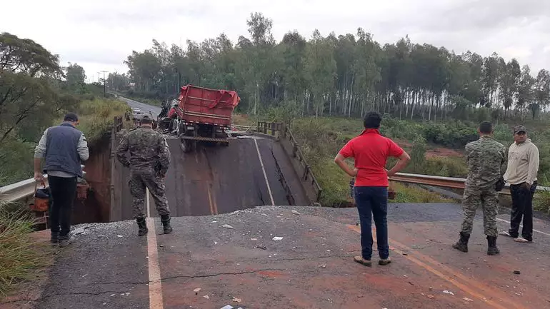 De acordo com a imprensa paraguaia, dois caminhões e uma SUV caíram no precipício depois que a ponte de concreto armado desmoronou. A estrutura tinha sido inaugurada em abril de 2020.