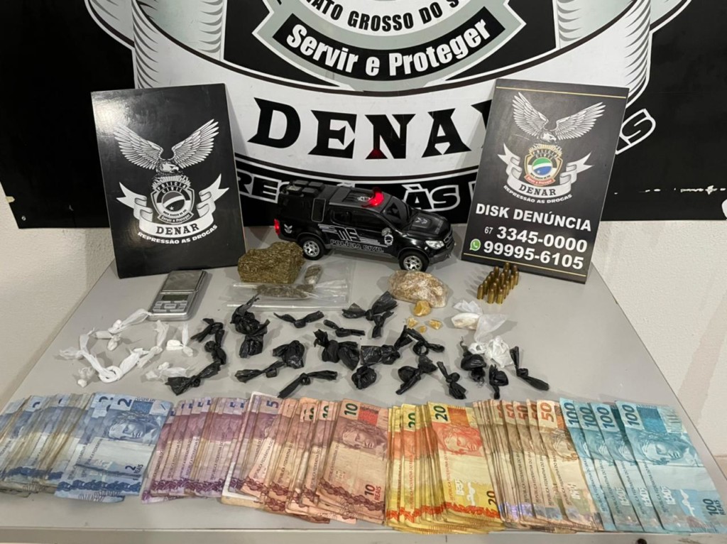 A apreensão ocorreu durante trabalho de investigação realizada pela Delegacia Especializada e a Narco Brasil – que visa intensificar os trabalhos de prevenção e repressão ao narcotráfico – e culminou na apreensão total de 4 porções de maconha, 35 porções de cocaína/pasta-base, 17 munições de calibre .380, além de balança de precisão e grande quantidade de dinheiro fruto do tráfico.