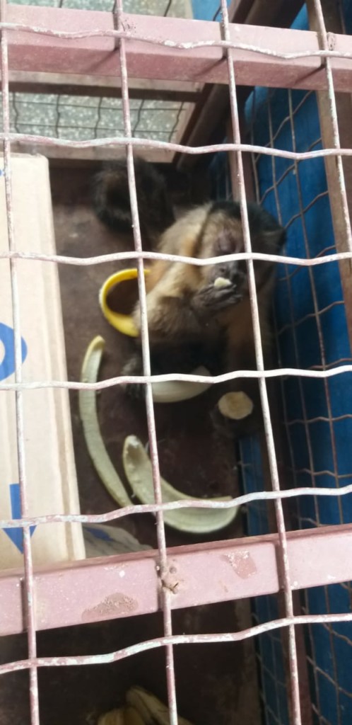 O primata apresentava ferimentos nas patas, os quais os Policiais não conseguiram identificar as causas. Ele foi encaminhado ao Aquário do Pantanal para atendimento médico veterinário e depois será conduzido ao Centro de Reabilitação de Animais Silvestres (CRAS), em Campo Grande, para a possível reintrodução na natureza.