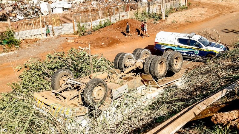 Um caminhoneiro de 38 anos, que transportava uma carga de pedriscos para aplicação no asfalto em Campo Grande acabou caindo do viaduto, na Avenida Duque de Caxias, na região do bairro Vila Popular, na manhã desta quinta-feira (24).