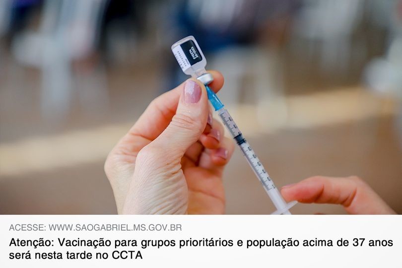 A Secretaria de Saúde de São Gabriel do Oeste recebeu nesta quinta-feira (01), mais uma remessa de vacinas do Governo do Estado de Mato Grosso do Sul. Com 1.576 doses para aplicação da 1ª dose (AstraZeneca, Pfizer e Janssen), o Município estará vacinando novos grupos prioritários e a população com 37 anos ou mais. A ação acontecerá nesta sexta-feira (02), das 13h às 17h em novo local – o Centro Cultural de Tradição e Amizade (CCTA).