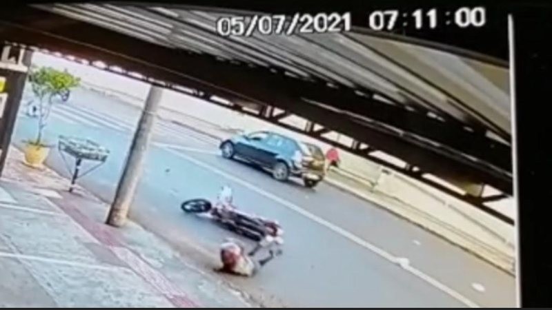 Pelas imagens de câmeras de segurança da região é possível ver quando a mulher que está com sacolas na mão começa a atravessar a faixa de pedestres na Avenida Tamandaré. Alguns carros param e quando ela já esta no fim da travessia acaba atropelada pelo motociclista.