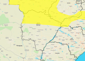 O alerta do Inmet é para possibilidade de chuva intensa e ventos de até 60 km por hora em Água Clara, Alcinópolis, Aparecida do Taboado, Aquidauana, Bandeirantes, Camapuã, Cassilândia, Chapadão do Sul, Corguinho, Corumbá, Costa Rica, Coxim, Figueirão, Inocência, Ladário, Paraíso das Águas, Pedro Gomes, Ribas do Rio Pardo, Rio Negro, Rio Verde, São Gabriel do Oeste, Selvíria, Sonora e Três Lagoas.