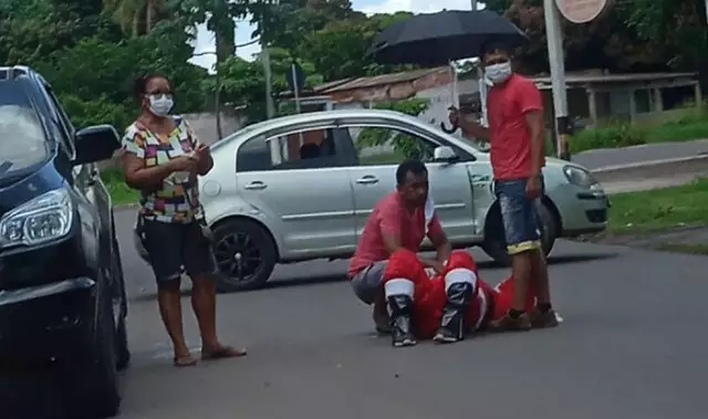 O Papai Noel teve ferimentos na coluna e na região da cabeça. Em imagens feitas no local, é possível ver o homem no asfalto sendo amparado por moradores. Após o acidente, diversas pessoas se aglomeraram no local e diversas imagens foram compartilhadas nas redes sociais.