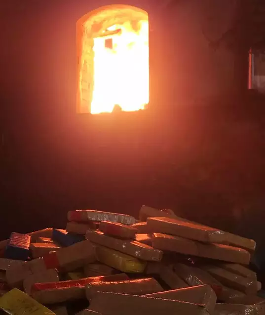Foram destruídos pacotes de haxixe, cocaína e maconha. (Foto: Divulgação)