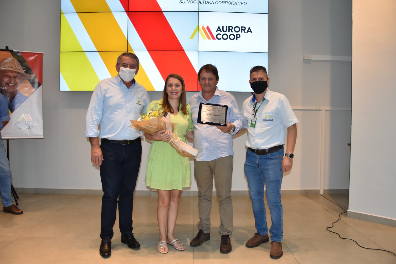 A cerimônia foi realizada no último dia 28/01, na sede da matriz Aurora Coop em Chapecó (SC), onde na oportunidade, o cooperado da COOASGO Sr. Hilário Valentini foi homenageado como Produtor Destaque em Mato Grosso do Sul, pelo bom desempenho apresentado na atividade suinícola ao longo do ano de 2021, no que tange aos aspectos de índices zootécnicos para os processos de manejo, resultados e certificação dos Programas do Encadeamento Produtivo.