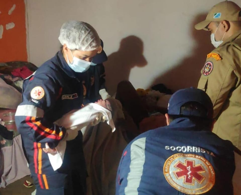 De acordo com as informações a equipe do Corpo de Bombeiros foi acionada e quando chegou no local a mulher já estava em trabalho de parto e após orientações dos soldados do Corpo de Bombeiros o bebê nasceu e logo em seguida a equipe do Samu chegou ao local e deu continuidade aos procedimentos, realizando os devidos padrões, após os primeiros procedimentos a equipe do Samu encaminhou o bebê e a mãe para o Hospital Municipal, onde tiveram atendimentos pediátricos e foram internados em alojamento conjunto, sem previsão de alta.