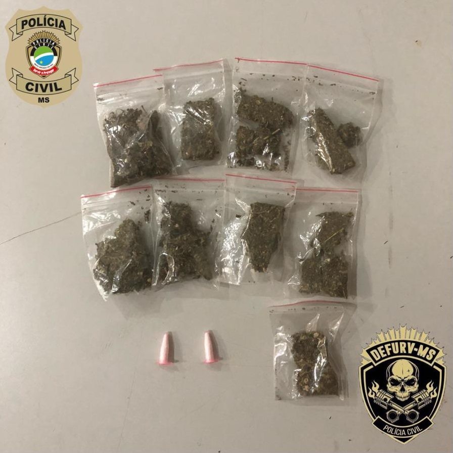 No final da tarde de hoje, os policiais civis lotados na DEFURV, estavam em diligências na região do Bairro Parque do Lageado, quando se depararam com o suspeito, que estava na posse de nove embalagens de maconha preparadas para venda, pesando 47 g, além de dois pinos de cocaína.