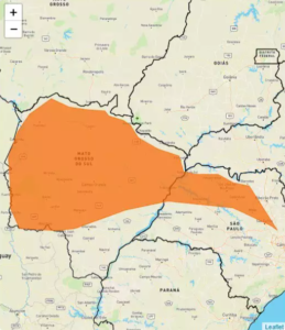 Os alertas são válidos até o período da manhã, sendo reavaliados no decorrer do dia. Campo Grande está na rota de dois deles, com previsão de chuvas de até 100 milímetros e ventos de até 100 km/h.