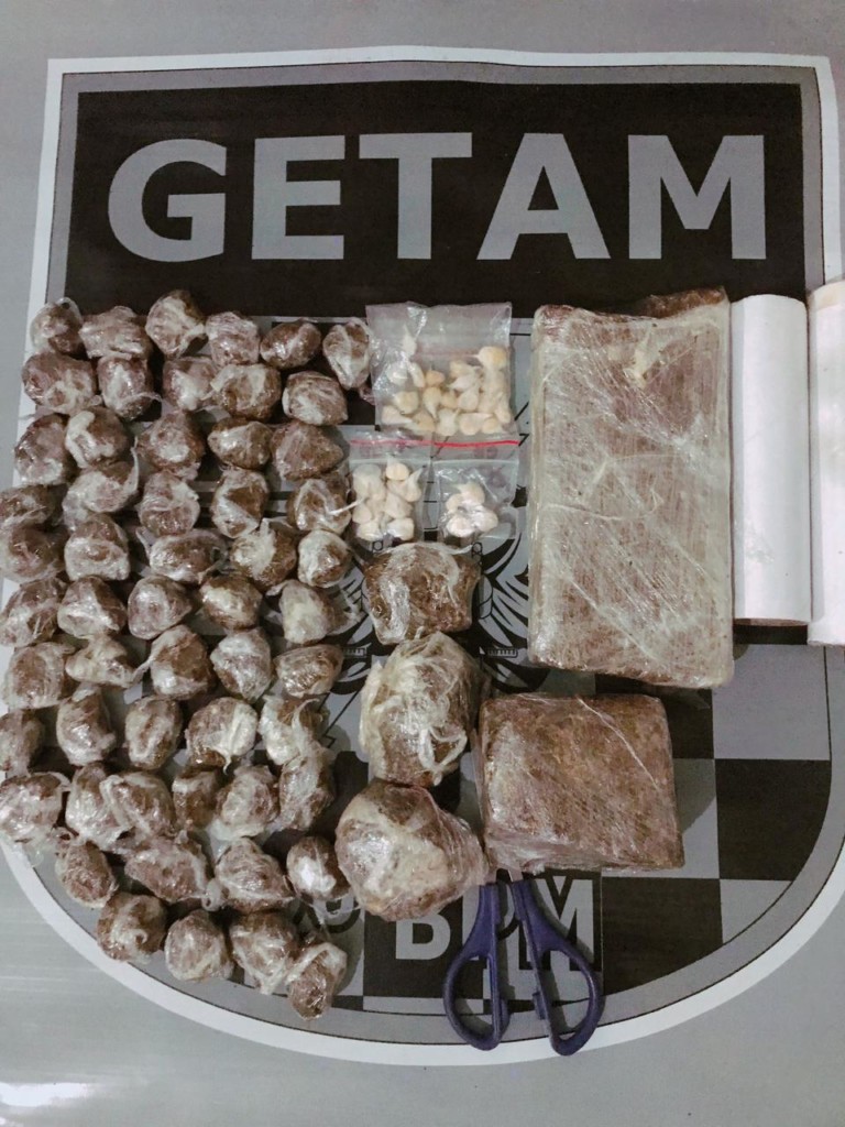 No apartamento alvo das denúncias foi apreendido 02 tabletes e 58 trouxinhas de maconha (829 gramas), 32 trouxinhas de crack (07 gramas), 01 balança de precisão além de petrechos utilizados no preparo e embalo da droga, os quais foram apresentados na delegacia de polícia civil juntamente com os detidos.