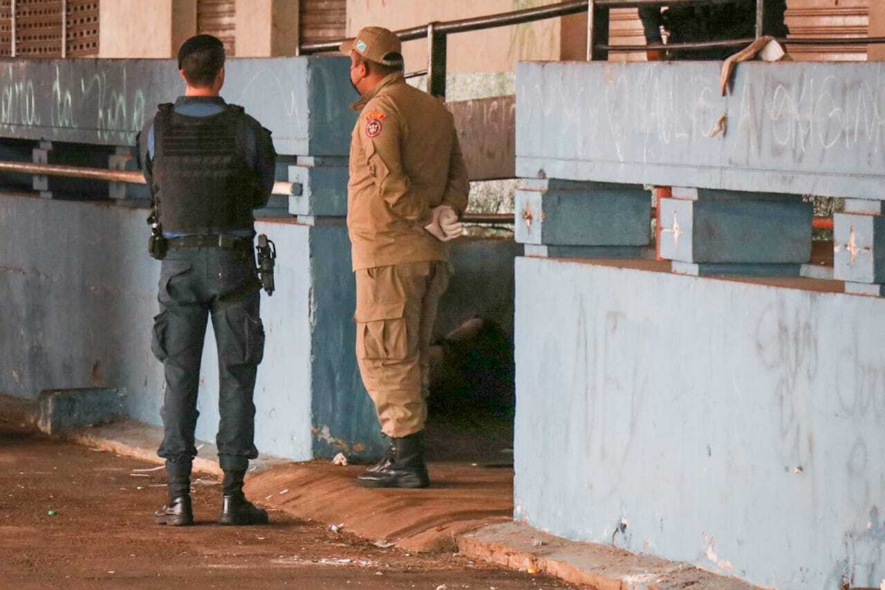 Com idade aparente de 40 anos, homem ainda não identificado foi assassinado na madrugada deste sábado (26) na Rua Vasconcelos Fernandes, entre as ruas Dom Aquino e Barão do Rio Branco, no Bairro Amambaí, região central de Campo Grande.