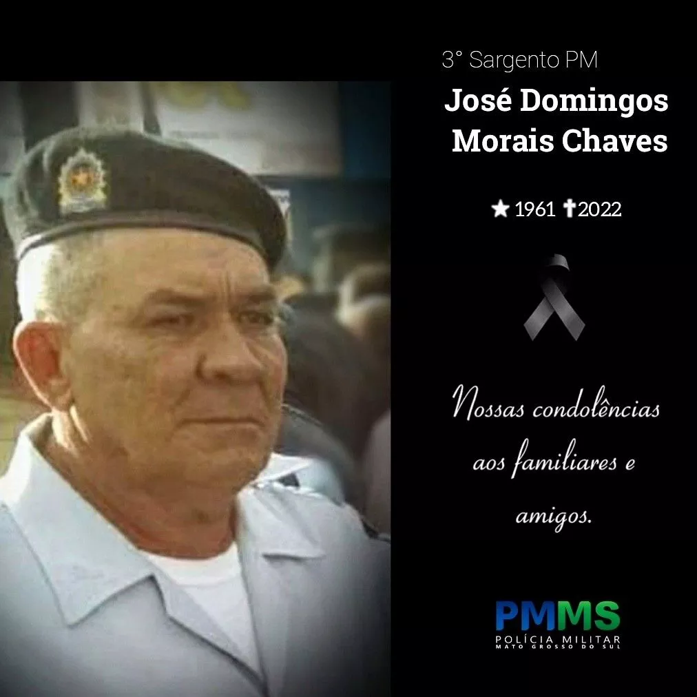 É com imenso pesar que a Polícia Militar do Estado de Mato Grosso do Sul comunica o falecimento do Terceiro-Sargento PM José Domingos Morais Chaves, 60 anos, em decorrência de um acidente de trânsito na Avenida Marcelino Pires, em Dourados.