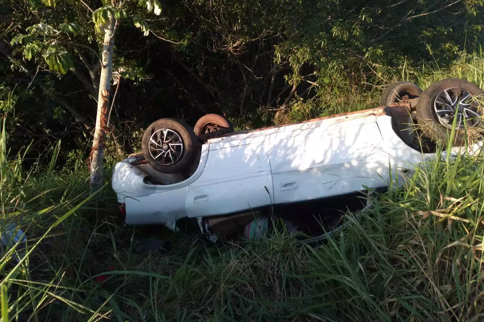 Conforme informações dos bombeiros, o motorista do Chevrolet Classic perdeu o controle da direção e capotou, parando o veículo com as quatro rodas para cima às margens da rodovia. Apesar da capotagem e da esposa do homem ter sido parcialmente arremessada para fora do carro, ambos tiveram apenas ferimentos leves.