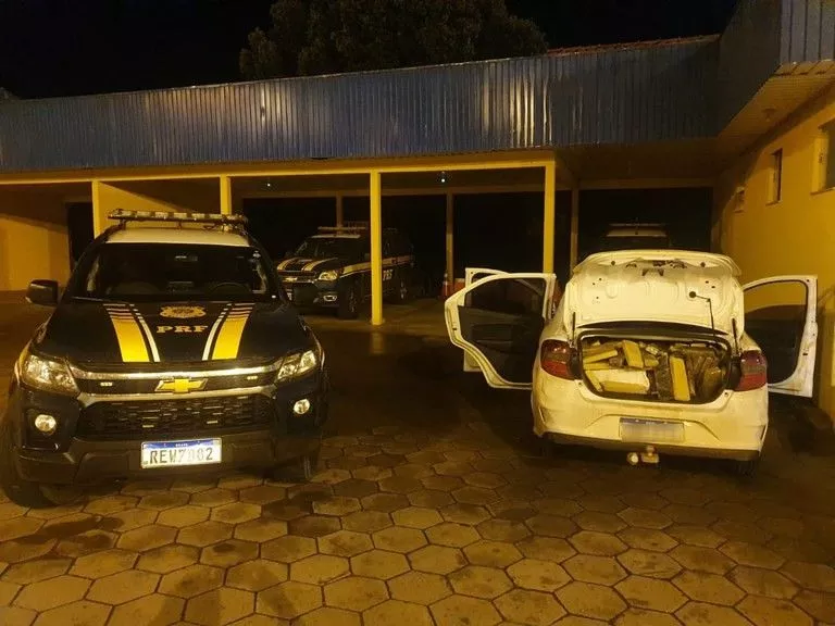A equipe de policiais rodoviários federais abordou nas proximidades da cidade o veículo Ford Ka, depois de o condutor ter desobedecido a ordem de parada de outra equipe da PRF em Nova Andradina (MS) e empreendido fuga. O homem levava no porta-malas do veículo e no banco traseiro 640 Kg de maconha.