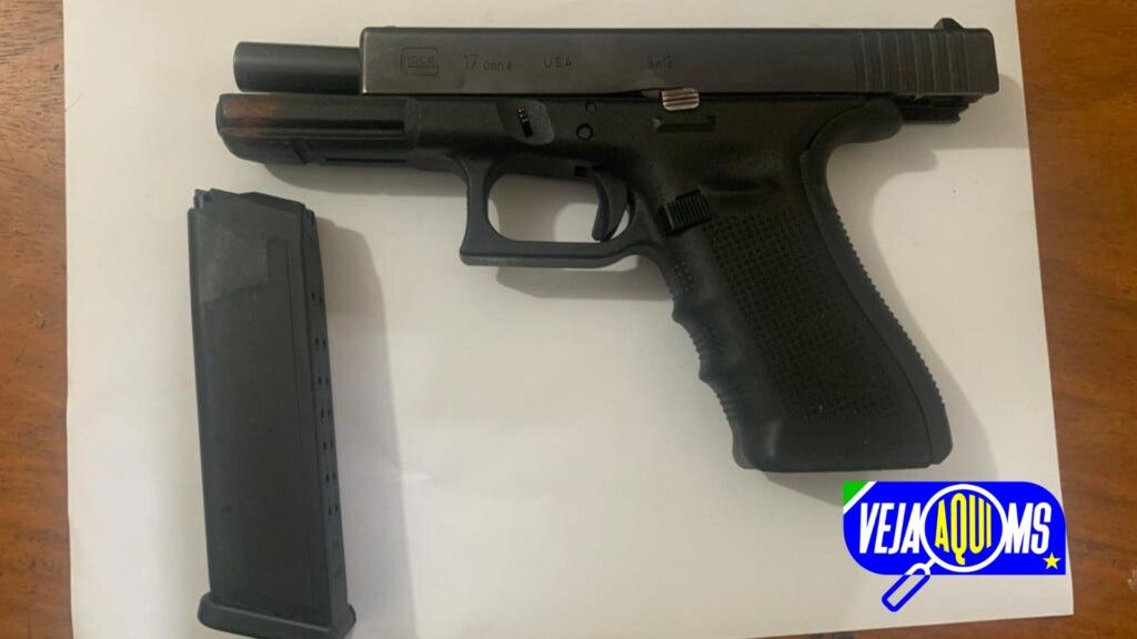 A guarnição se deslocou até o local mencionado, onde identificou o homem atrás de uma lixeira com uma das mãos atrás das costas. Nesse momento os militares abordaram o suspeito e com ele, encontraram uma pistola da marca Glock, calibre 9mm, sem munições no pente.