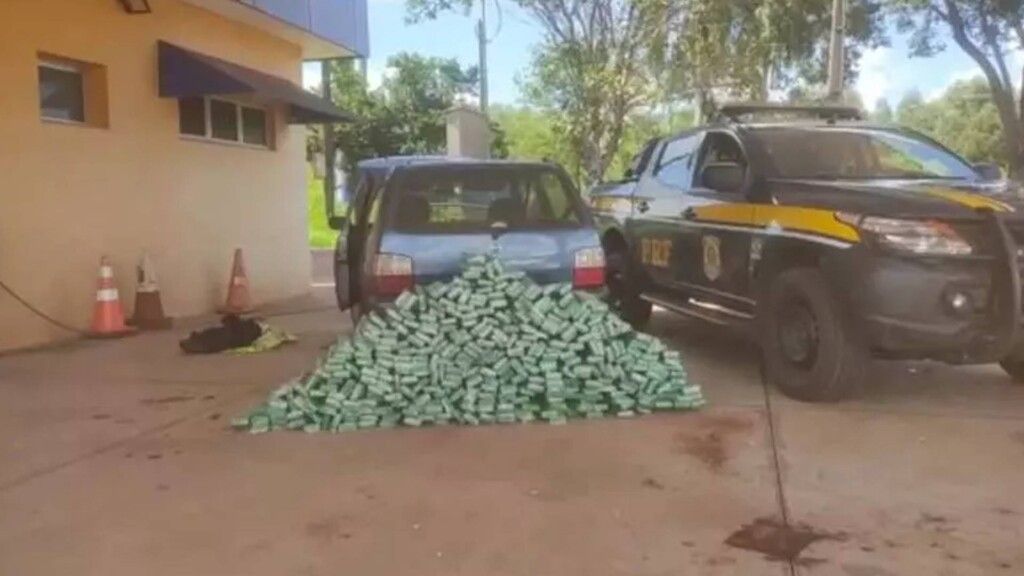 Também estavam como passageiros no veículo uma adolescente de 15 anos e o filho dela, de 2 anos. Por conta do nervosismo do PM, os agentes federais fizeram uma busca no carro, encontrando vários tabletes de maconha em mochilas, no interior das portas e bancos dianteiros e traseiro, além do assoalho e outros locais. Ao todo, foram apreendidos 235,6 quilos da droga.