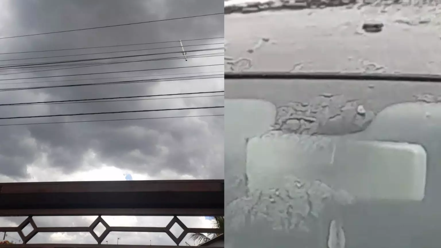 Moradora do bairro Vida Nova lll, localizado na saída de para Cuiabá, afirma que logo após o fim do jogo do Brasil na Copa do Mundo, começou a chover forte no local e com granizo.