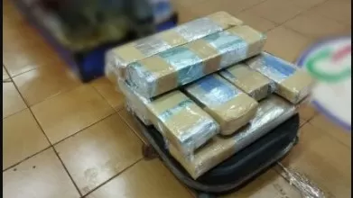 Após vistoria no bagageiro foi localizado uma mala com 10,3 kg de substância análoga à maconha.