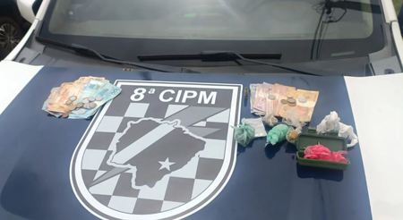 Equipe de Força Tática da 8ª Companhia Independente de Polícia Militar, na sexta-feira (17), apreendeu 14,7 gramas de pasta base, 1,1 gramas de cocaína e 7 gramas de maconha e prendeu em flagrante um homem por tráfico de drogas.