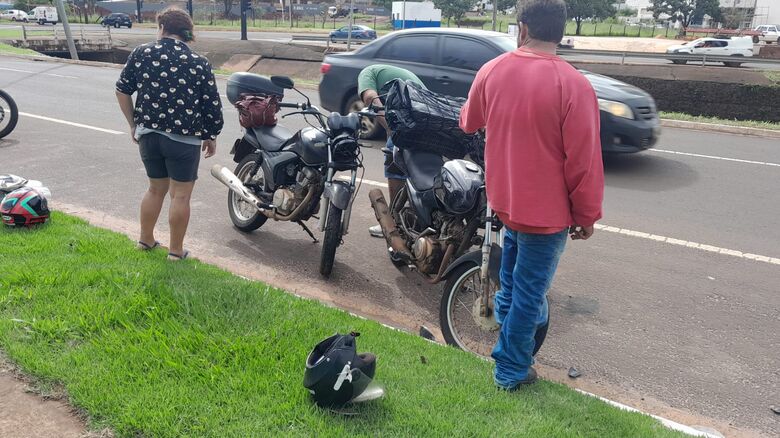 Segundo apurado, o motociclista de 46 anos, seguia pela avenida no sentido ao shopping, quando ao tentar desviar do congestionamento, acabou colidindo contra a outra motocicleta.