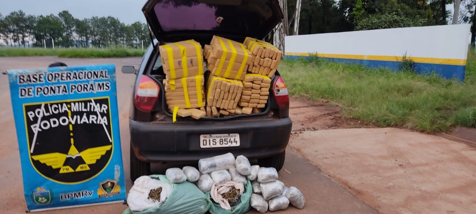 Equipe da Polícia Militar Rodoviária prendeu um homem que transportava 420 quilos de maconha na MS-164 nesta quinta-feira (27), em Ponta Porã, cidade a 313 quilômetros de Campo Grande. A droga é avalliada em R$ 850 mil.