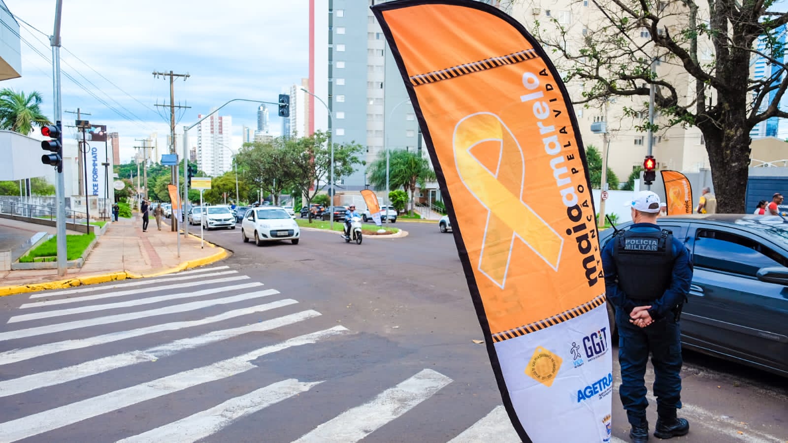 A Prefeitura de Campo Grande lançou nesta terça-feira (2) o calendário de atividades em alusão a Campanha Maio Amarelo. Com o tema neste ano “No trânsito, escolha a vida”, o movimento internacional foi criado com a finalidade de conscientizar e prevenir acidentes de trânsito. A ação teve largada no início da manhã no semáforo do cruzamento da Rua Pestalozzi com Avenida Ricardo Brandão, esquina da Câmara Municipal de Campo Grande.