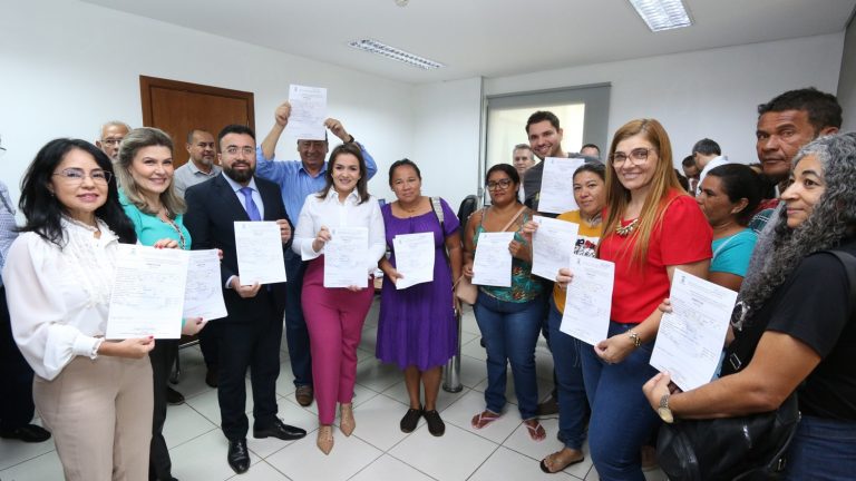Em comemoração ao Dia Nacional de Respeito pelo Contribuinte, nesta quinta-feira (25), a Prefeitura de Campo Grande entregou o Habite-se, documento que comprova a conclusão das obras em acordo com todas as exigências técnicas e legais, para 50 famílias moradoras do Parque dos Sabiás, loteamento entregue em 2021, construído integralmente pelo município. O evento aconteceu no gabinete da Semadur, com participação da Sefin, PGM e Amhasf.