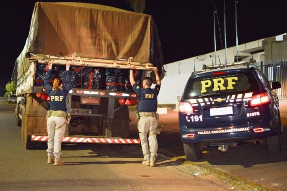 Na madrugada desta terça-feira (30), agentes da Polícia Rodoviária Federal apreenderam, próximo a Paranaíba, um carregamento de 3,4 mil toneladas que estavam na carroceria de um caminhão sem qualquer tipo de disfarce, somente coberto por uma lona para proteger da chuva.