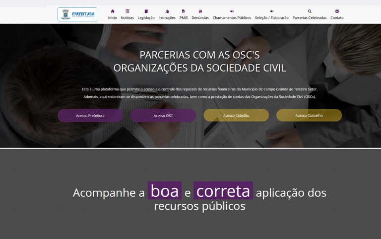 Para tornar mais transparente o processo de transferência de recursos financeiros para as Organizações da Sociedade Civil (OSC), a Prefeitura Municipal de Campo Grande implantou um sistema para que a população acesse e acompanhe cada etapa do processo.