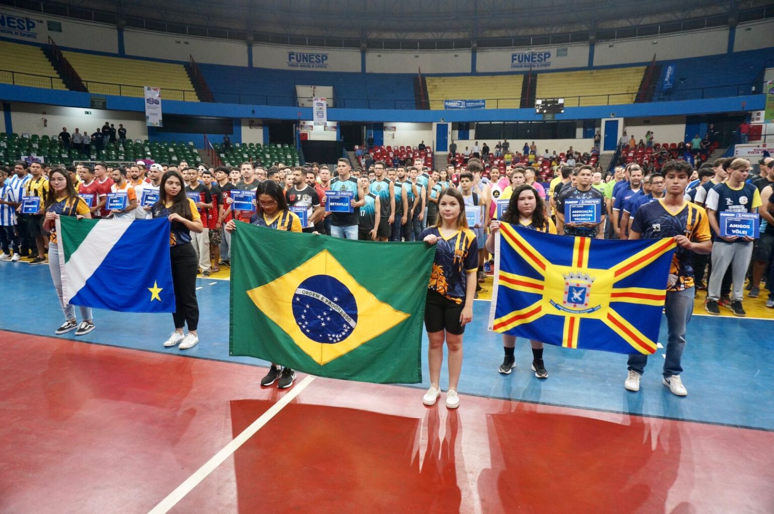 A quadra poliesportiva do Ginásio Avelino dos Reis, mais conhecido na Capital como Guanandizão, ganhou brilho na noite desta terça-feira (15), com a participação de milhares de atletas que vão participar de um dos maiores eventos esportivos do Estado – a 44ª Edição do Jogos Abertos 2023 – realizada pela Prefeitura de Campo Grande por meio da Fundação Municipal de Esporte (Funesp).