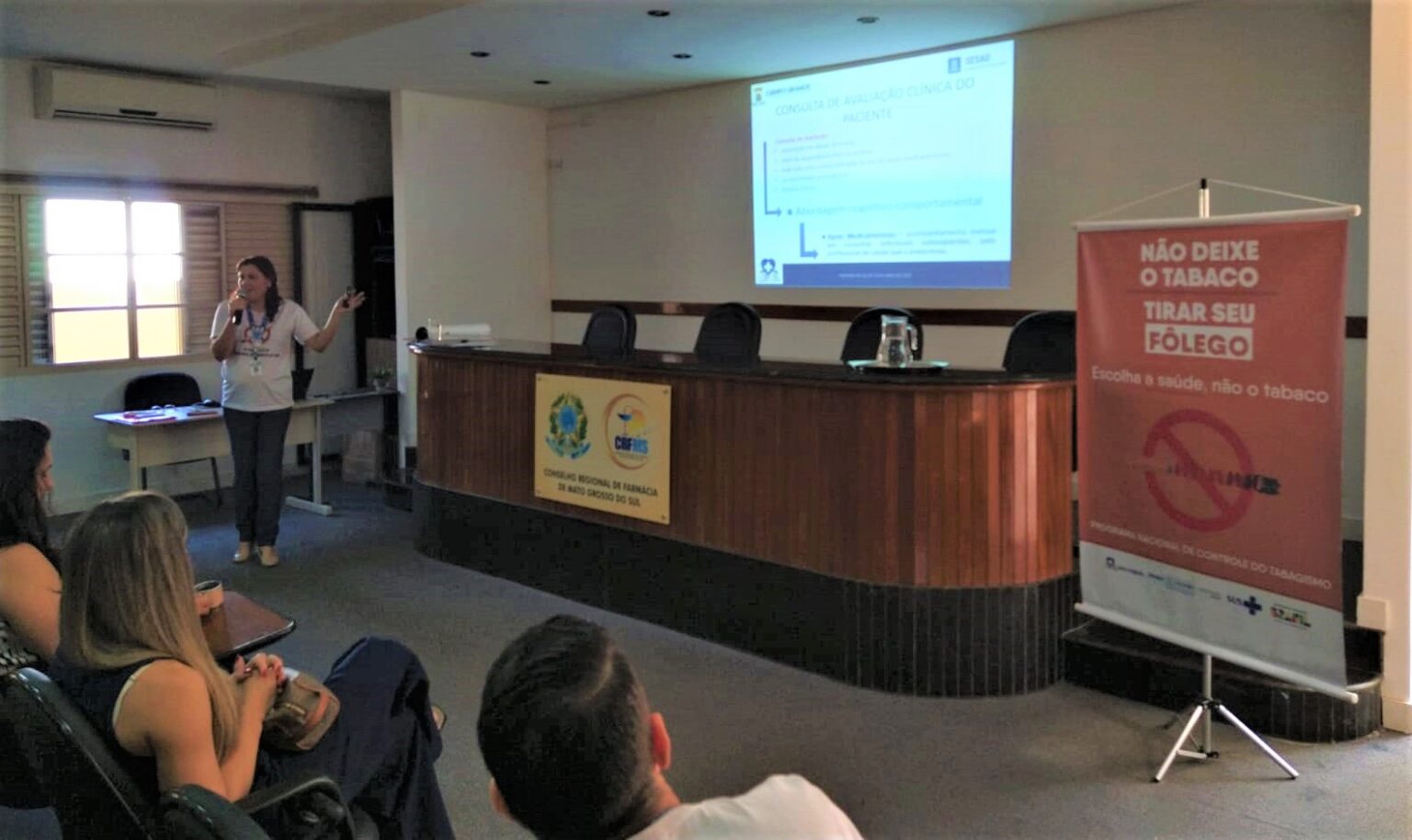De acordo com a gerente técnica do Programa de Tabagismo da Sesau, Mirelle Cabreira, mais de 50 profissionais, entre efetivos e residentes, estiveram presentes na capacitação realizada no auditório do Conselho Regional de Farmácia (CRF/MS).