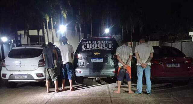 Ao consultar a placa do veículo no sistema da polícia, a equipe constatou que o carro havia sido furtado em Brasília. Os quatro, então, foram presos e autuados por receptação, adulteração de sinal identificador de veículo e associação criminosa. No decorrer da ocorrência, três dos quatro veículos foram recuperados. Um outro suspeito, identificado como Marcos, com apelido de Marcola, conseguiu fugir. Polícia faz buscas para encontrá-lo.