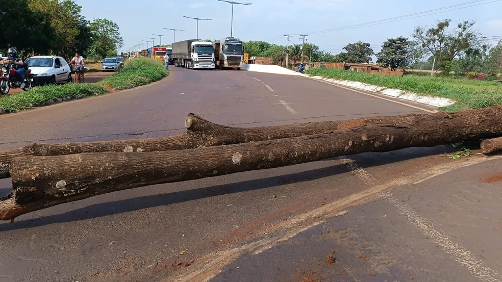 A reportagem apurou que o grupo interditou um trecho da rodovia com pedras, galhos e troncos de árvores. Apenas veículos de emergência podem passar. Ainda não há previsão de liberação do trânsito.