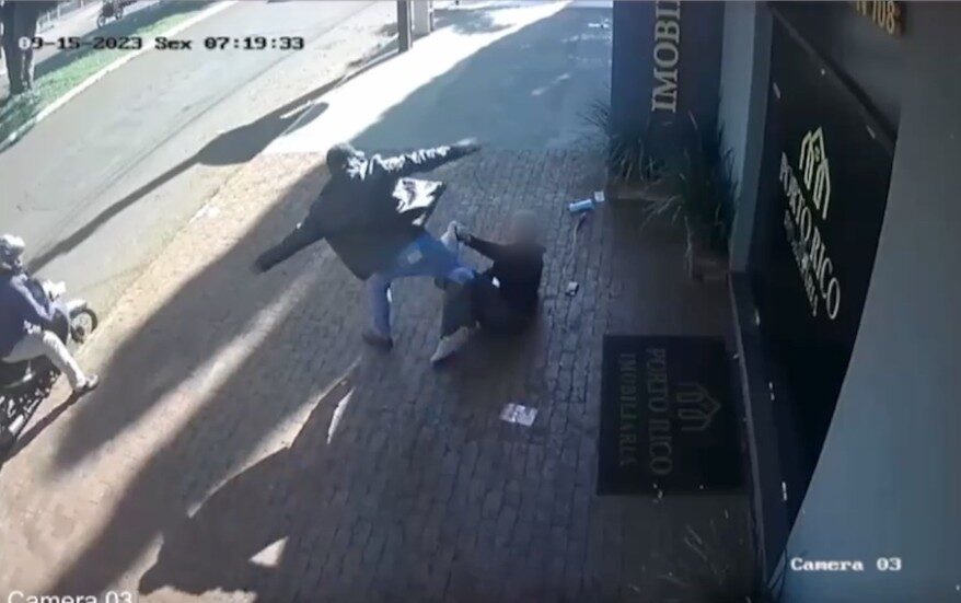 Comerciante de 64 anos de idade foi agredida na manhã desta sexta-feira (15) no centro de Ponta Porã, cidade a 313 km de Campo Grande, na fronteira com o Paraguai. Vídeo gravado por câmera de monitoramento mostra o autor das agressões jogando a idosa no chão e desferindo chutes quando ela estava caída (veja as imagens acima).