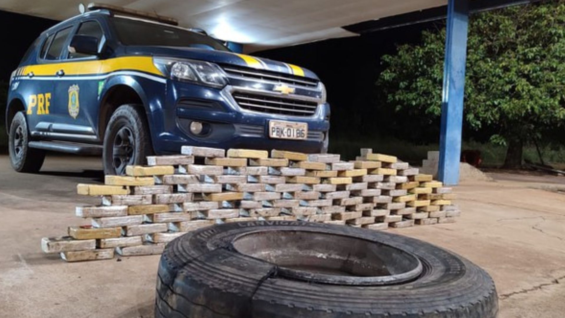 Na hora da vistoria do veículo, os policiais retiraram os estepes e encontraram os entorpecentes, momento em que o condutor fugiu do local. A equipe fez buscas nas imediações, mas não localizou o suspeito, a mulher foi presa.