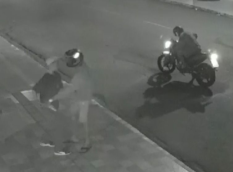 Os autores utilizaram-se de uma motocicleta para a prática do crime. Pelas imagens, os dois indivíduos se aproximaram da vítima com a moto. Um dos autores deixou a moto e foi até a vítima, tomando o celular a força do adolescente e fugindo do local.