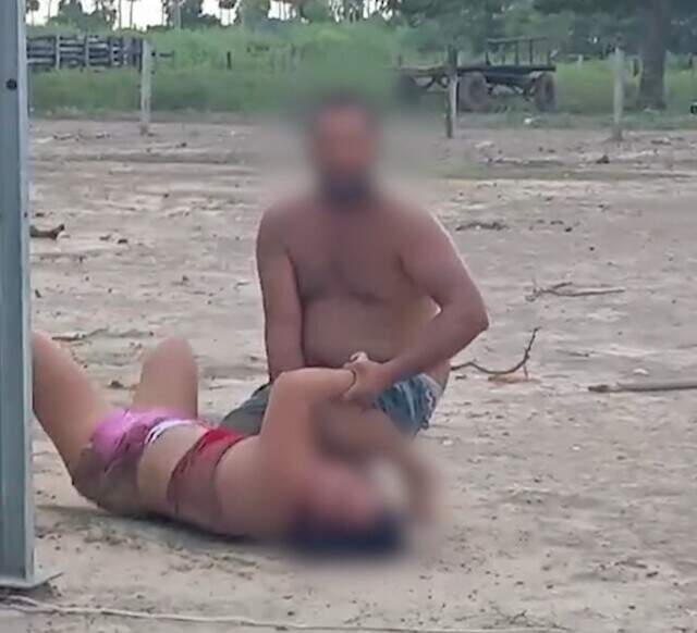 Em vídeo enviado ao Campo Grande News pelos familiares da vítima, a mulher aparece encurralada no chão pelo homem, que é muito maior do ela e a segura com as pernas contra o pescoço da mulher. No momento em que está sendo agredida, uma criança assiste a cena. Ela tenta se livrar dele, mas é impedida.